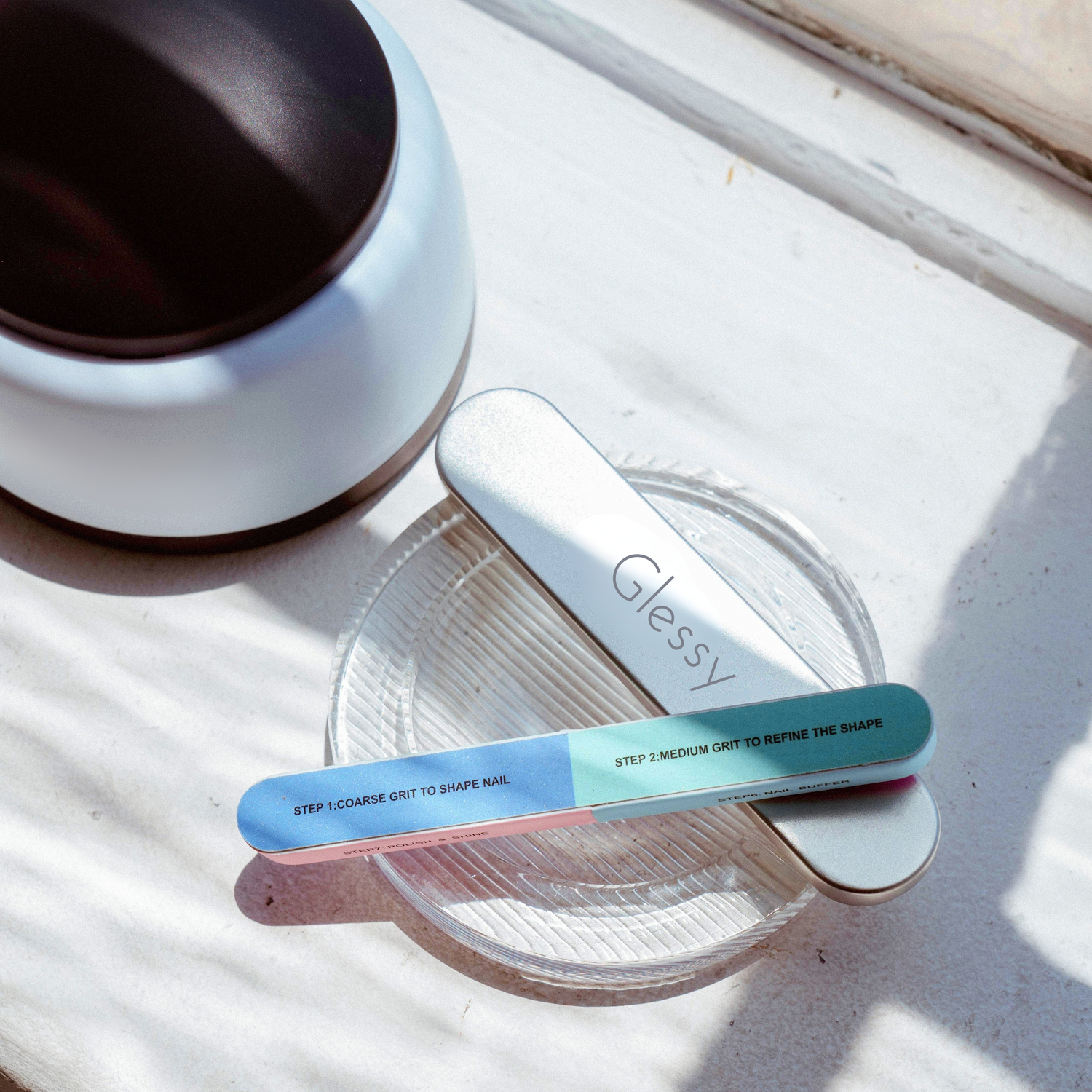 Le buffer multi-étapes Glessy est l’outil tout-en-un idéal pour retrouver des ongles naturels, sains et éclatants.